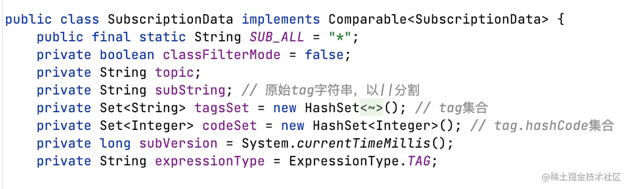 SubscriptionData是封装后的订阅信息,每个topic一个。
