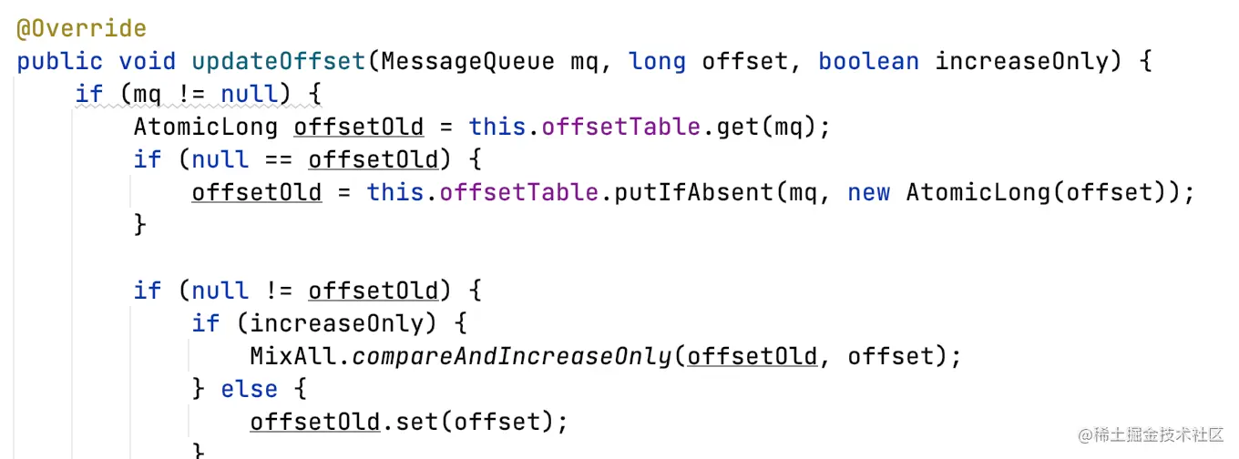 RemoteBrokerOffsetStore#updateOffset:更新消费offset,只更新内存。
