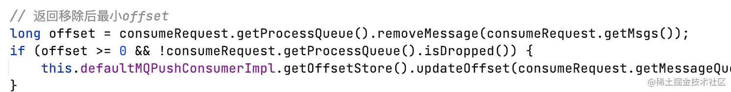 - 更新OffsetStore内存中的queue的消费进度,由Pull线程或后台定时任务5s异步向broker更新消费进度;