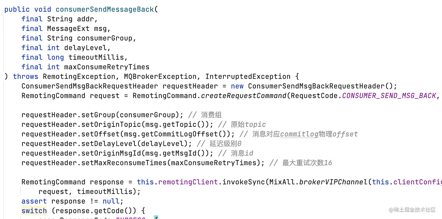 Step1,消费者调用broker重新投递这条消息CONSUMER_SEND_MSG_BACK。
