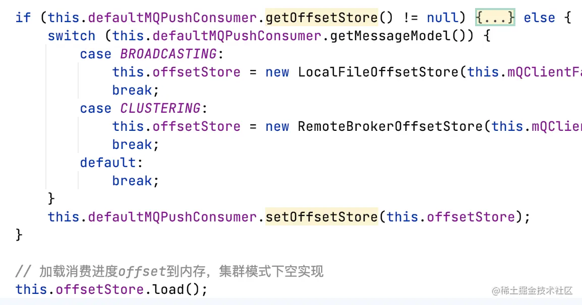 根据MessageModel选择不同的OffsetStore实现: