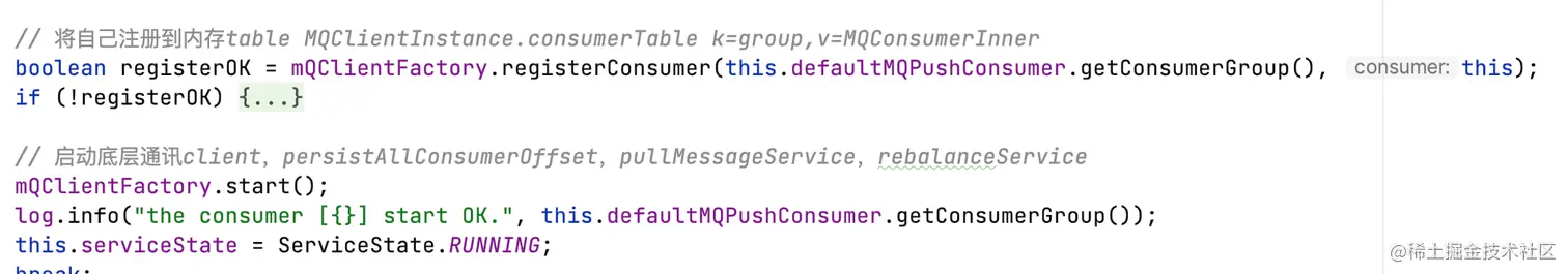 DefaultMQPushConsumerImpl#start: