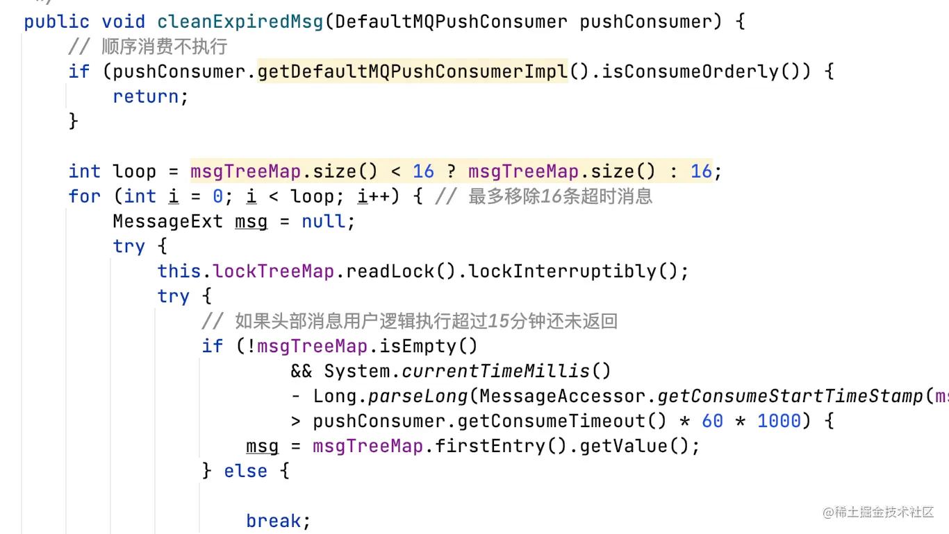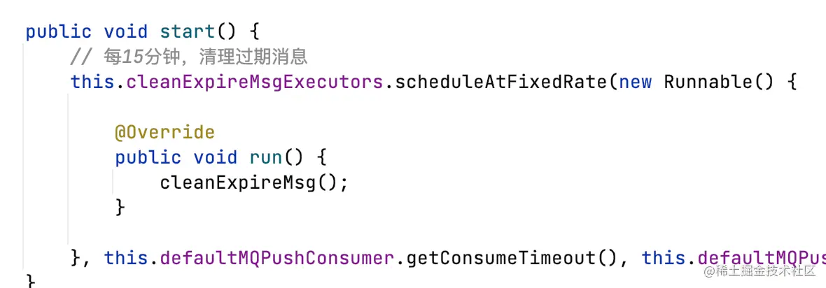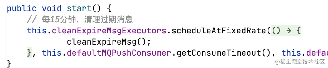 ConsumeMessageConcurrentlyService开启后台线程,每隔15分钟扫描所有ProcessQueue。