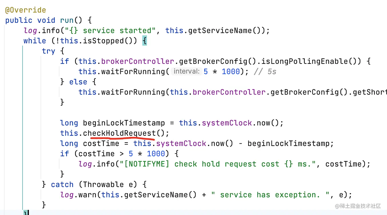 - 客户端允许broker挂起(长轮询),挂起时长30s;