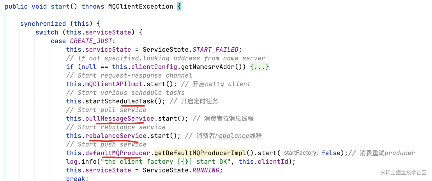 DefaultMQPushConsumerImpl#start:第五步,启动MQClientInstance。