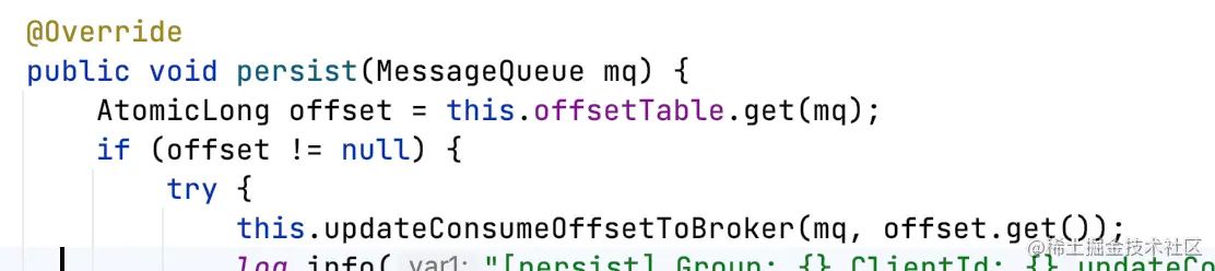 RemoteBrokerOffsetStore#persistAll/persist:在适当的时机,consumer会将内存offset同步至broker。