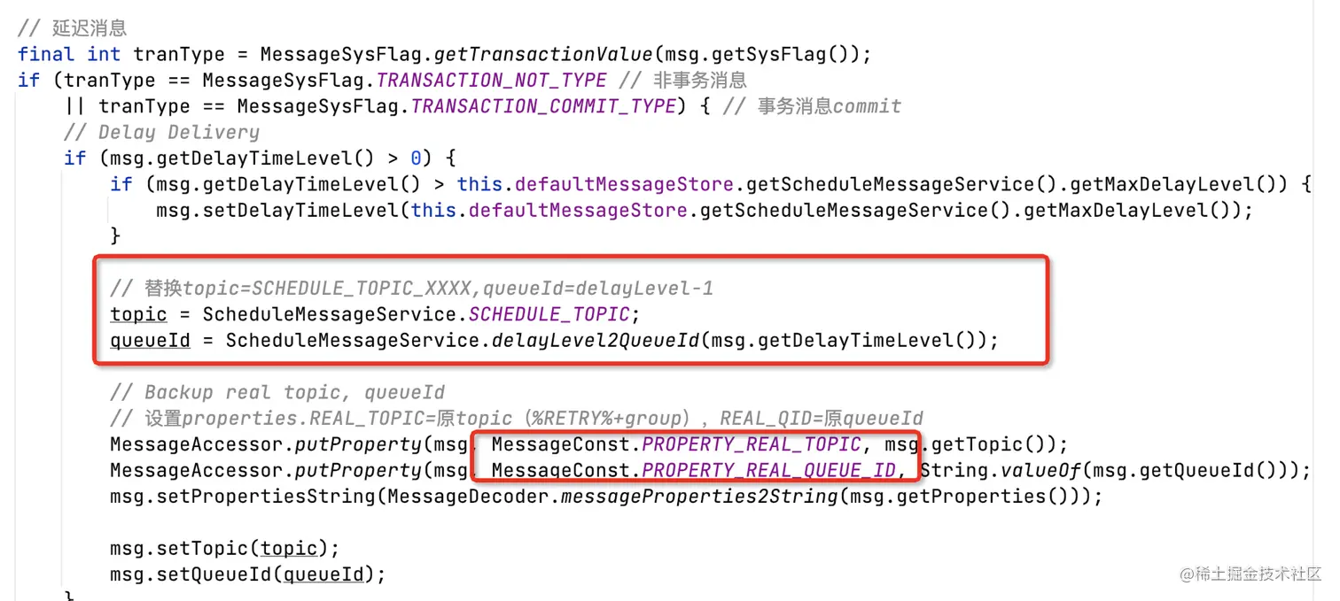 这部分涉及延迟消息特性,简单提一下。