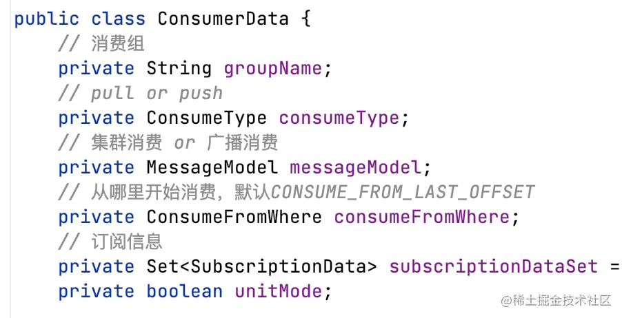 客户端心跳包HeartbeatData中,consumerDataSet部分属于consumer信息。