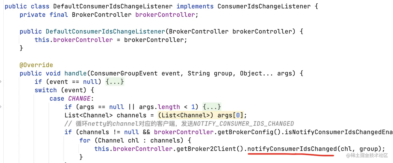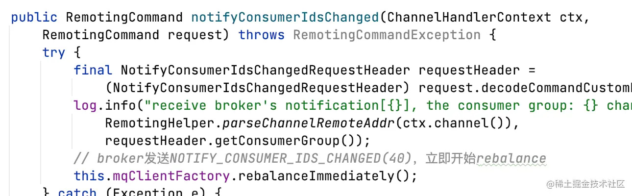 - broker侧监测到组内consumer实例上下线或订阅数据发生变更,会通知consumer进行rebalance;