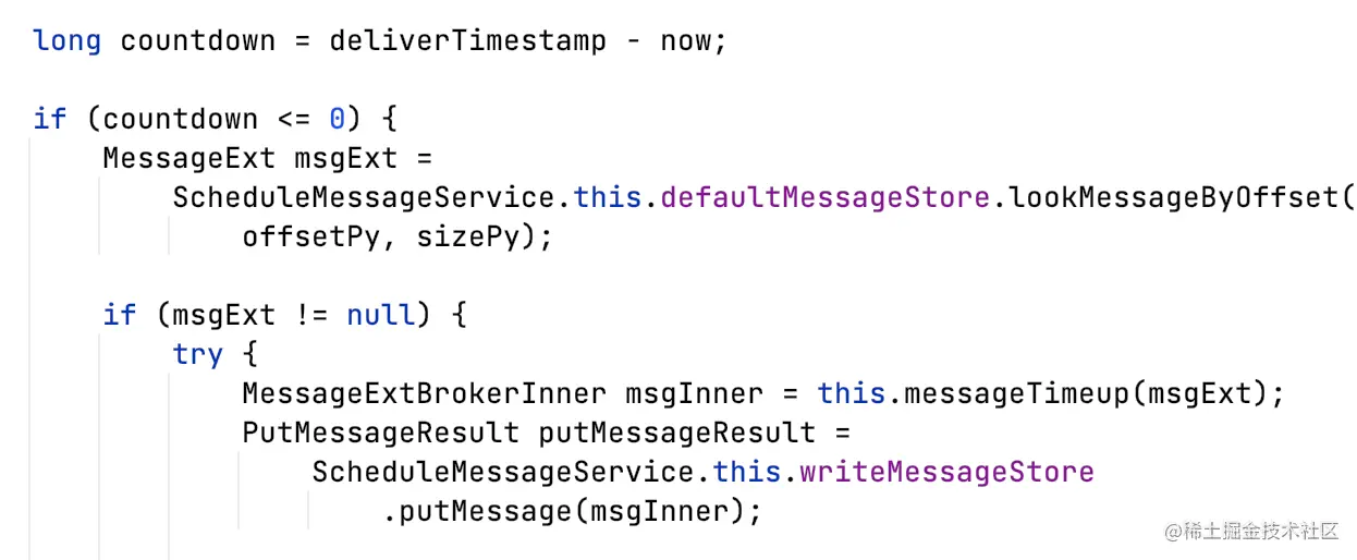 ScheduleMessageService.DeliverDelayedMessageTimerTask#messageTimeup: