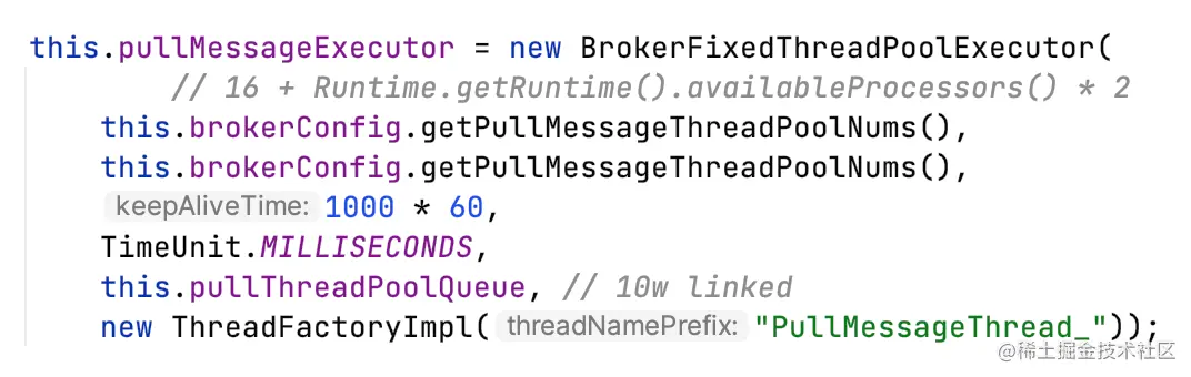 broker对于Pull消息请求,业务线程池核心/最大线程数:16+核数*2,队列:10w。