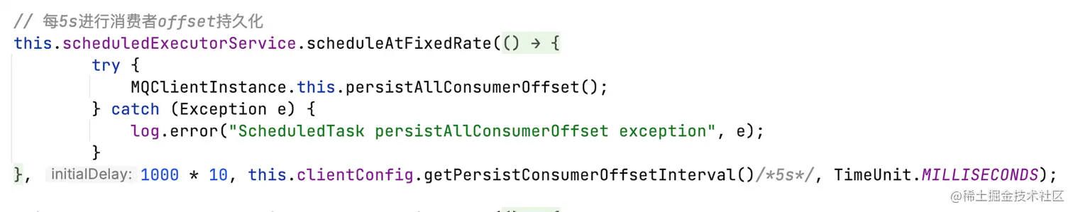 除此以外,consumer每隔5s进行offset持久化,具体逻辑后续深入。