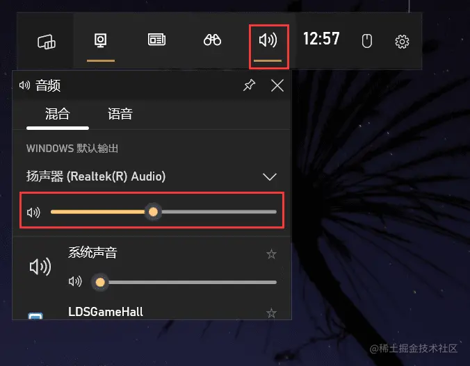 步骤2:在Xbox Game Bar中,点击 “音频” 图标,在弹出的音频设置中,把扬声器声音打开。