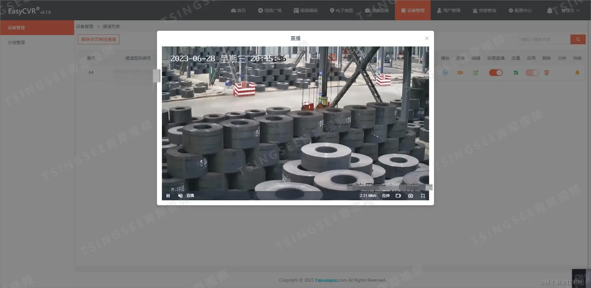 视频监控汇聚平台支持通过4G/5G/WIFI等视频传输技术,将设备采集的视频进行接入、转码处理及多端分发,可支持的视频流格式包括RTSP、RTMP、HTTP-FLV、WS-FLV、HLS、WebRTC等,能覆盖全终端、全平台。