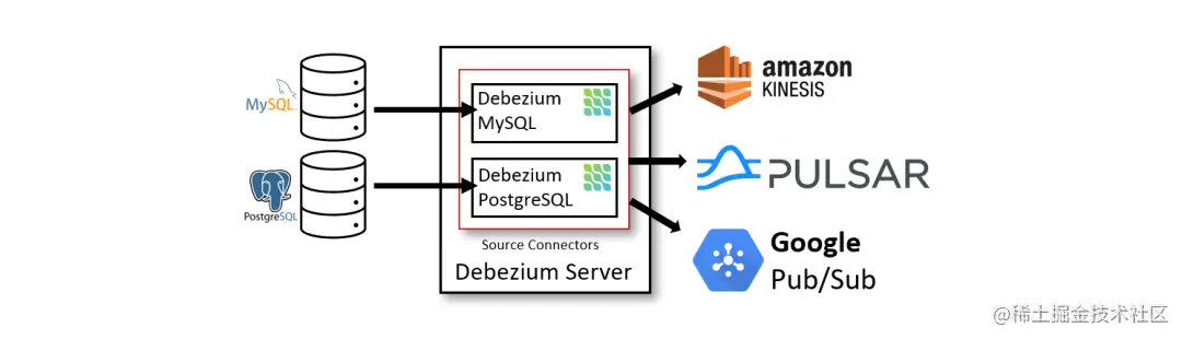 Debezium提供了模块为你做这些复杂的工作。一些模块是通用的,并且能够适用多种数据库管理系统,但在功能和性能方面仍有一些限制。另一些模块是为特定的数据库管理系统定制的,所以他们通常可以更多地利用数据库系统本身的特性来提供更多功能。