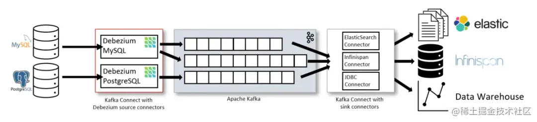 Debezium是一个捕获数据更改(CDC)平台,并且利用Kafka和Kafka Connect实现了自己的持久性、可靠性和容错性。