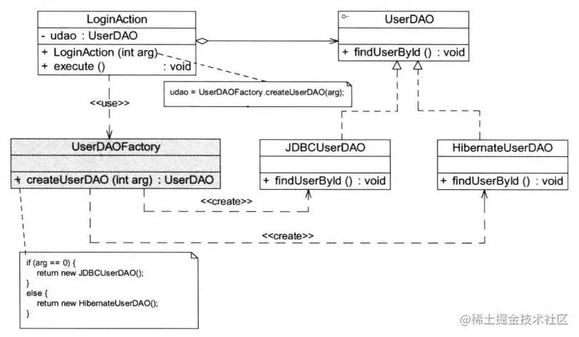 - 如果需要新增或删除UserDAO的子类,只需要修改UserDAOFactory类