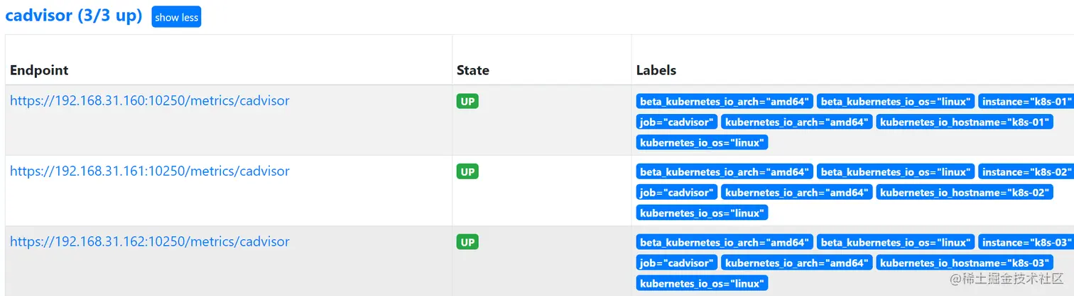 成功接入后,在prometheus target页面可以看到采集正常: