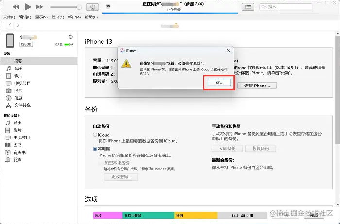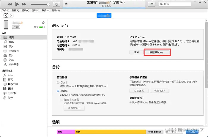 方法二:iTunes工具恢复出厂设置