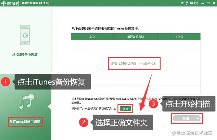 如果您的手机之前没有进行过任何备份,我们可以通过数据蛙苹果恢复专家的深度扫描来恢复数据,以下是从iOS备份中恢复手机数据的具体步骤: