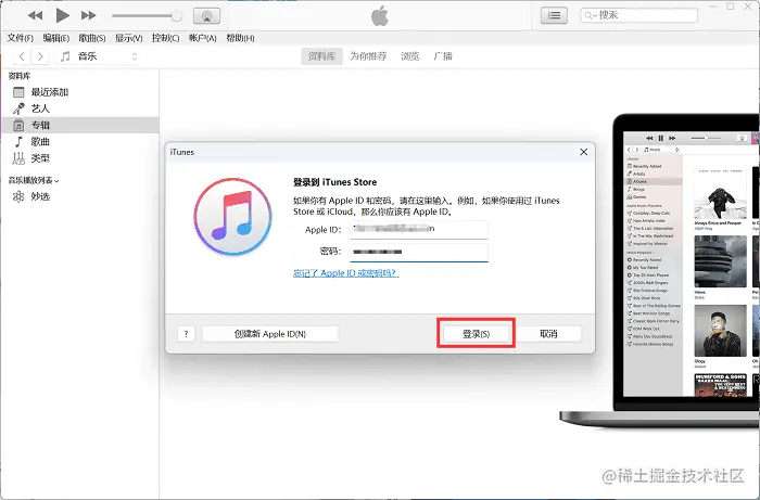 步骤3:在弹出的登录窗口中输入自己的Apple ID和密码进行登录。
