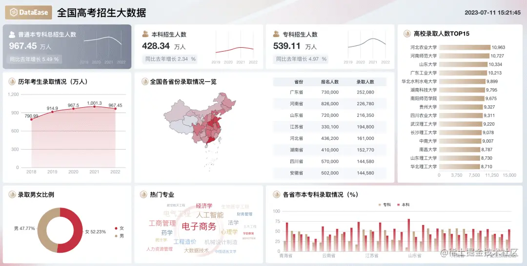 DataEase模板市场定期进行模板上新。2023年7月共上新7个模板,涉及教育、制造、零售、医疗、开源生态等主题,欢迎大家在DataEase模板市场下载使用。