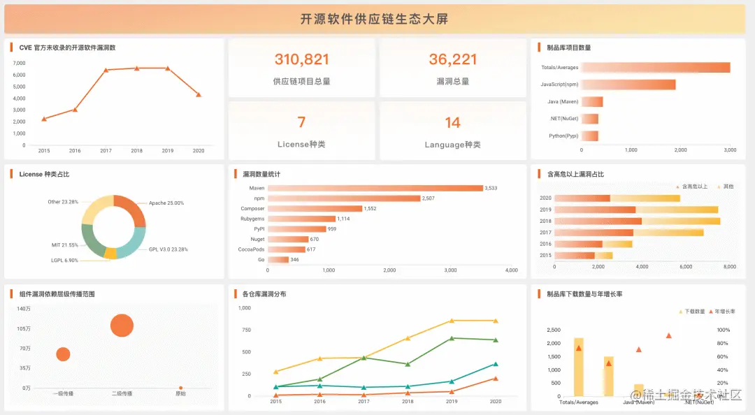 DataEase开源数据可视化分析平台于2022年6月正式发布模板市场(https://dataease.io/templates/)。模板市场旨在为DataEase用户提供专业、美观、拿来即用的仪表板模板,方便用户根据自身的业务需求和使用场景选择对应的仪表板模板,并在优质模板的基础上轻松制作自己的仪表板。目前,DataEase模板市场的模板数量已经超过了100个。