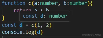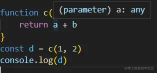 当a和b有类型注解时,TypeScript就自动进行类型推断出d为number类型