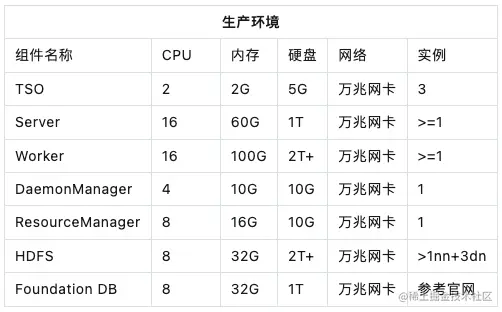 表2 生产环境硬件配置建议
