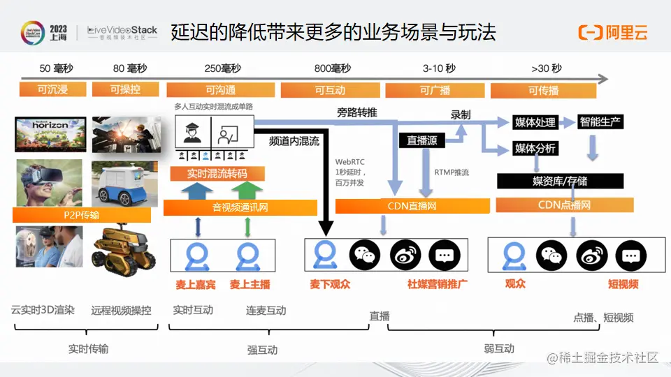 从上面可以看到,延时的降低带来了更多的业务场景和更多新的玩法。