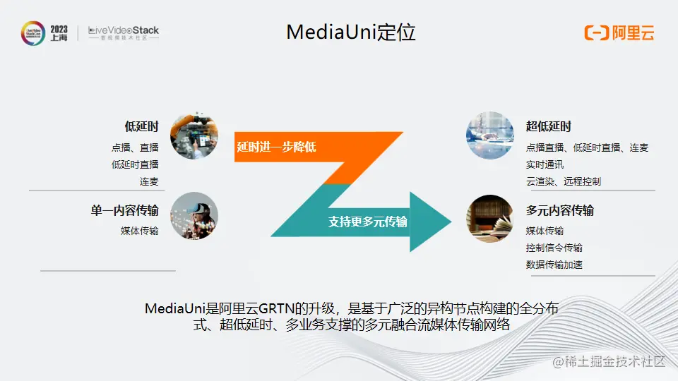 基于以上思考,阿里云设计并实现了MediaUni,其中Uni取自单词unified,意为通过一张统一的网络,服务各种业务场景。