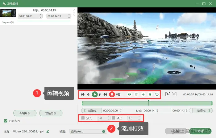 第3步:完成录制后,点击 “停止录制” 按钮,我们可以直接对游戏视频进行剪辑,分割视频或者添加特效等。