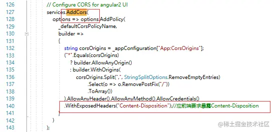 .WithExposedHeaders("Content-Disposition");//应前端要求暴露Content-Disposition