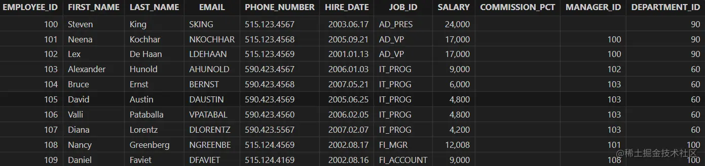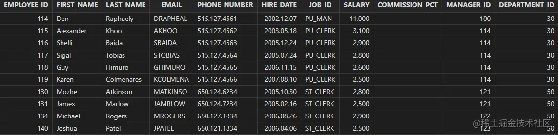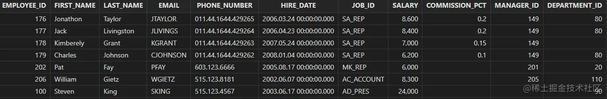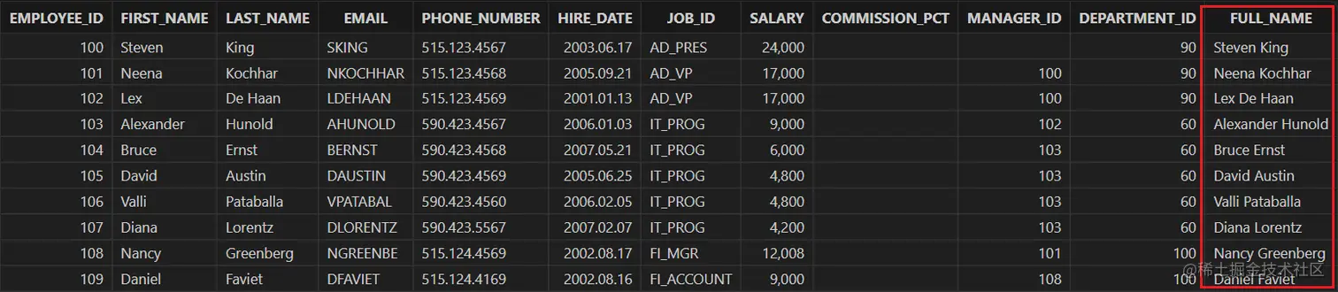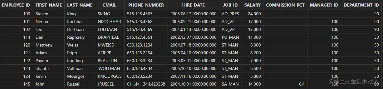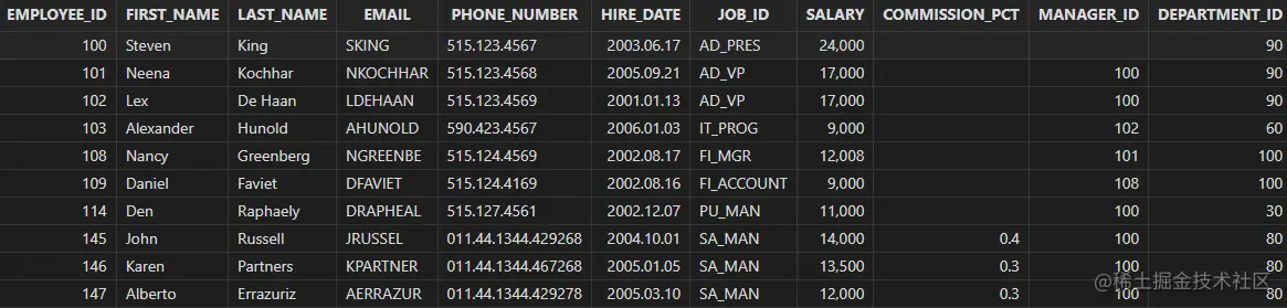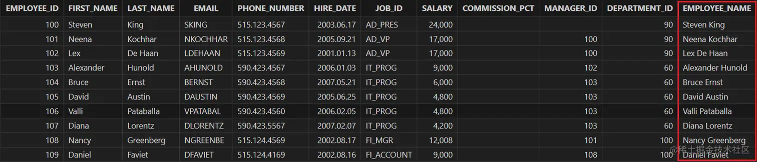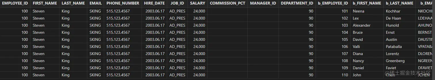 "select employee_id, first_name, last_name, \n" +