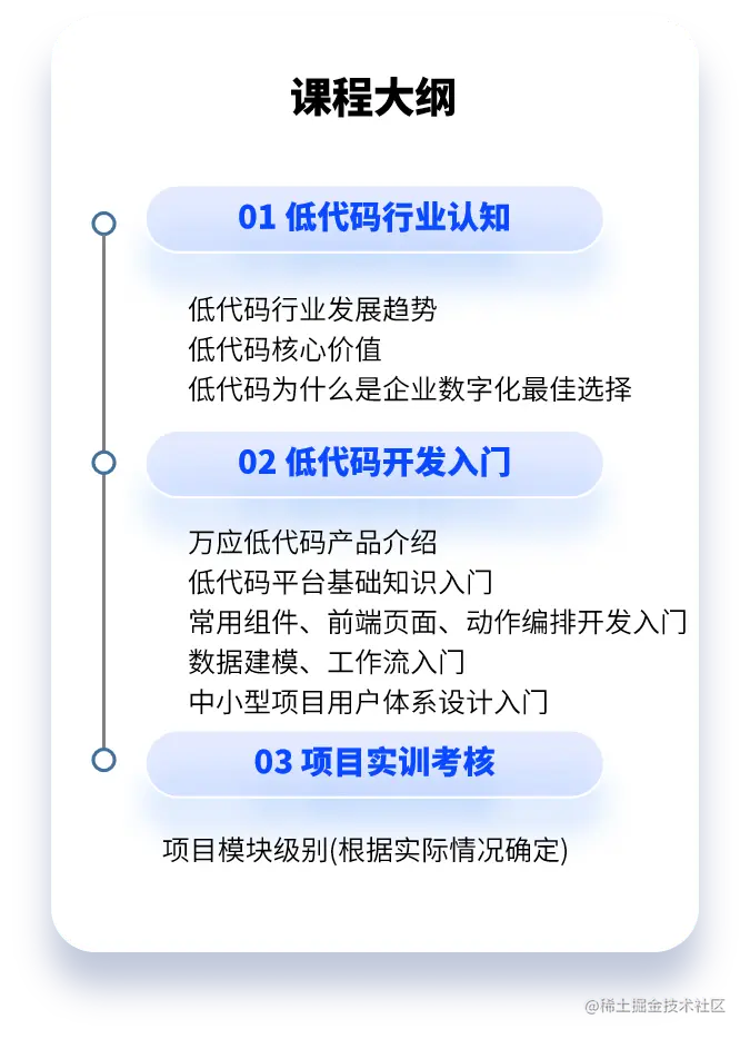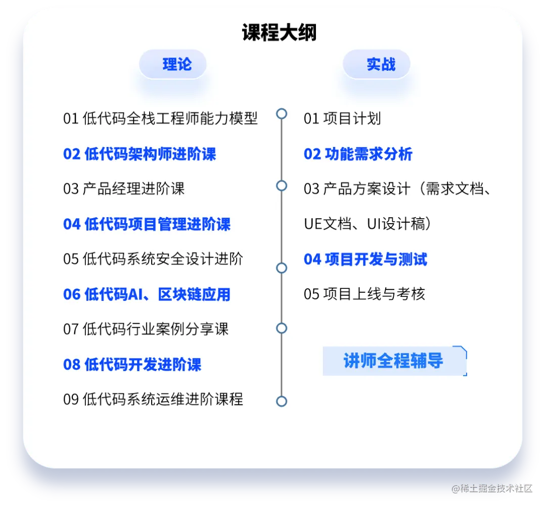 看了上图可能很多人会觉得奇怪,怎么前期的课程跟低代码没啥关系,反而要花很多精力去讲产品经理和UI的内容。