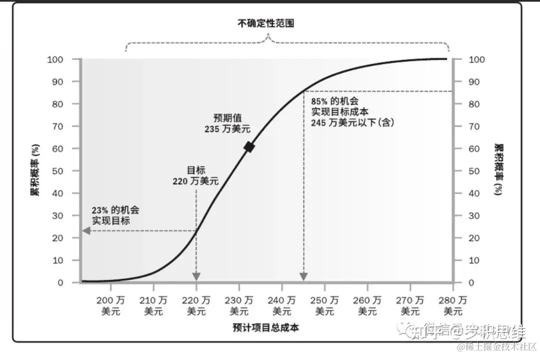 ●蒙特卡洛模拟法是一种常用的多点估算法(相对于单点估算、三点估算),往往用于整个项目而不是某个活动层面。