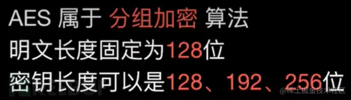 AES加密算法 是密码学中的高级加密标准。AES为分组加密法,把明文分成每组长度相等的一组一组;每次加密一组数据,直至整个明文被加密完毕。在AES标准规范中,分组长度只能是128位。AES是按照字节进行加密的,也就是说每个分组为16个字节(每个字节8位)。密钥的长度可以使用128位、192位或256位,但这会导致密钥长度不同,推荐加密的轮数也不同。