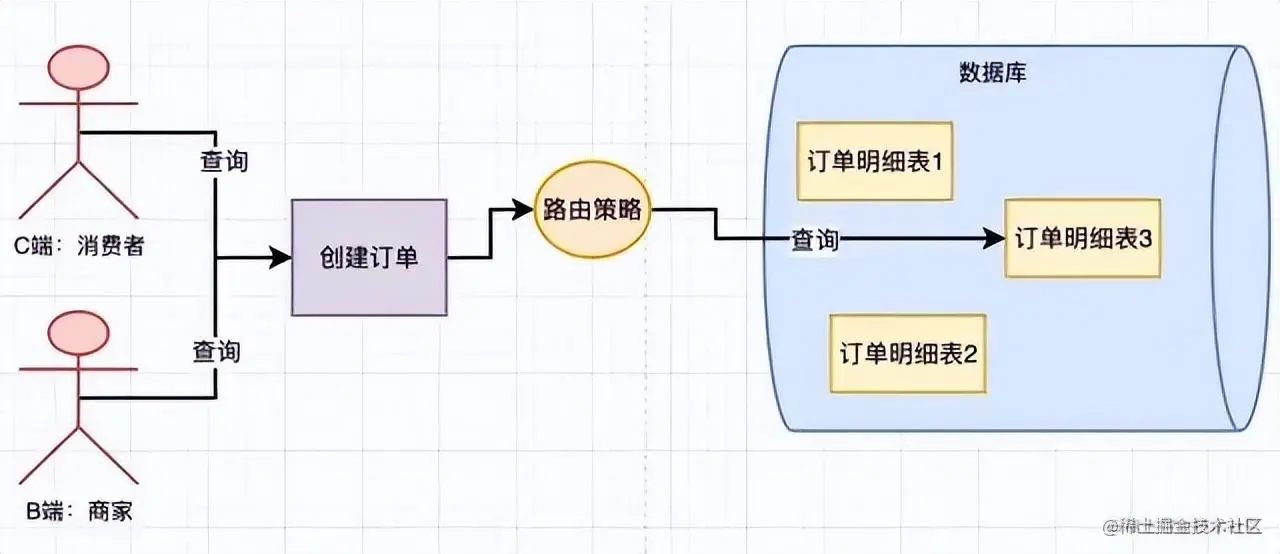 如果在插入订单的时候有一定的规则,根据这个规则插入到数据库中,查询的时候也执行相应的规则到对应的表中进行查询。这样就能减少数据操作的复杂性。可以通过设计路由策略来实现,用户和商家查询数据的时候都遵循相同的路由策略。