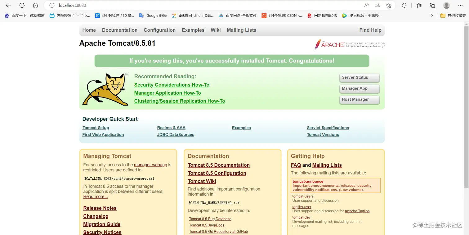 如果配置成功,打开浏览器,输入http://localhost:8080/