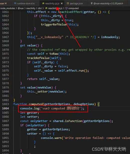 下图我是在vue内核文件的computed源码里新增了一行打印