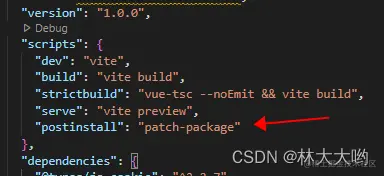 当执行完上面指令后,项目会多一个文件夹:patches, 里面新增一个补丁文件:reactivity@3.2.20.patch,这个时候按照下面来修改package.json内容,不过最后都要重启项目噢