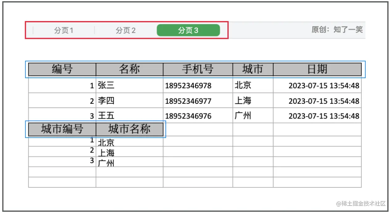 基于easyexcel组件中封装的EasyExcel工具类,继承自EasyExcelFactory工厂类,实现Excel单个或多个Sheet的创建,并且在单个Sheet中写多个Table数据表;