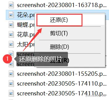照片删除后怎么恢复?一般来说,电脑的回收站是删除照片的暂存地。如果我们在电脑上发现找不到需要的照片,可以在回收站中进行查看。查找到相关文件后按以下步骤进行: