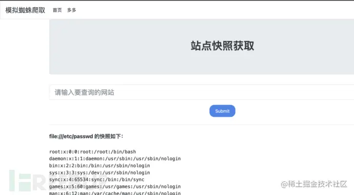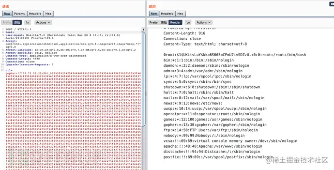 3. 尝试读取文件/etc/passwd,并返回内容,可以判断出是回显型ssrf。