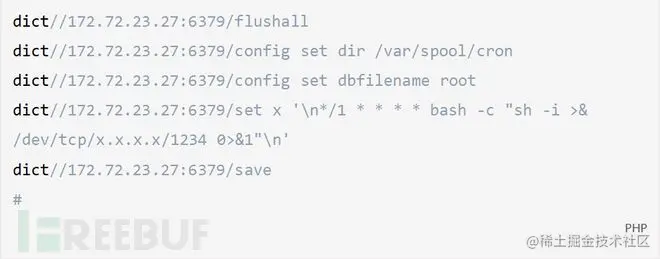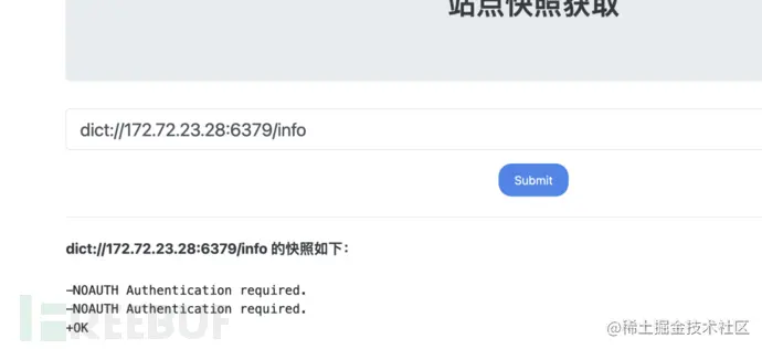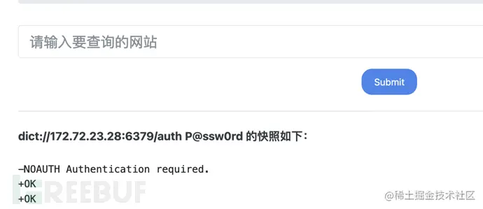 2. 使用dict协议访问6379端口的服务,redis需要验证密码。如果在内网redis需要认证的情况下,我们可以使用dict或gopher协议对密码进行爆破。