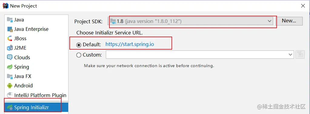 2、选择Spring初始化器,Spring Initializr,其他没修改的话默认即可,点击Next