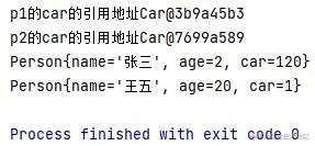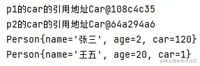 p2.car.setMoney(1);//变量是一个实例对象,则拷贝其地址引用,p2和p1公有的