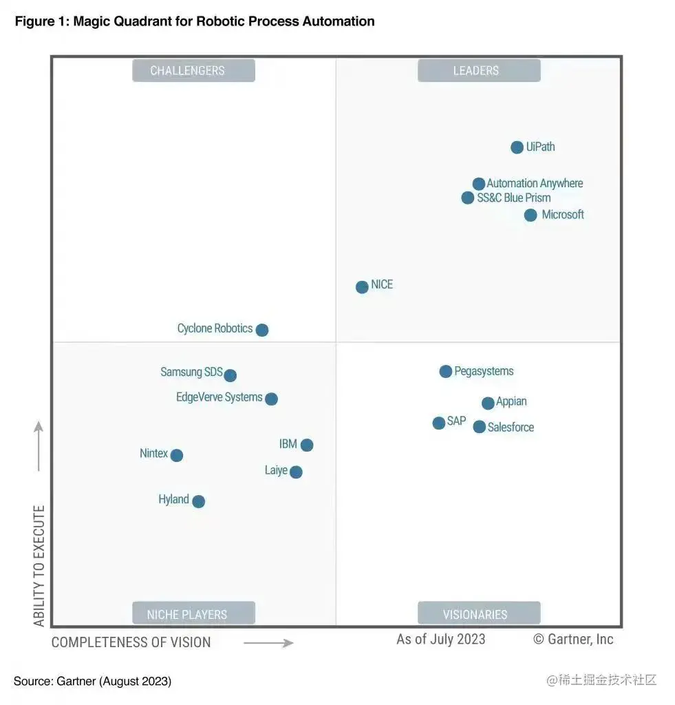 8月3日,全球著名咨询调查机构Gartner发布了《2023年全球RPA魔力象限(Gartner RPA MQ)》报告。
