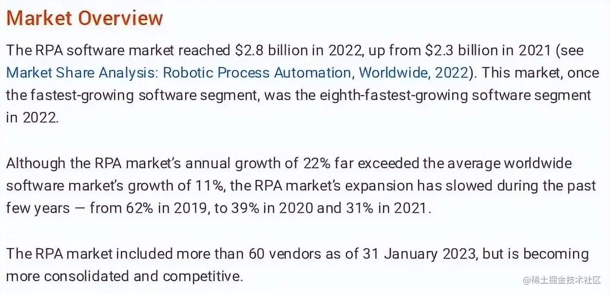 在生成式AI的影响下,RPA市场将继续保持高速增长。