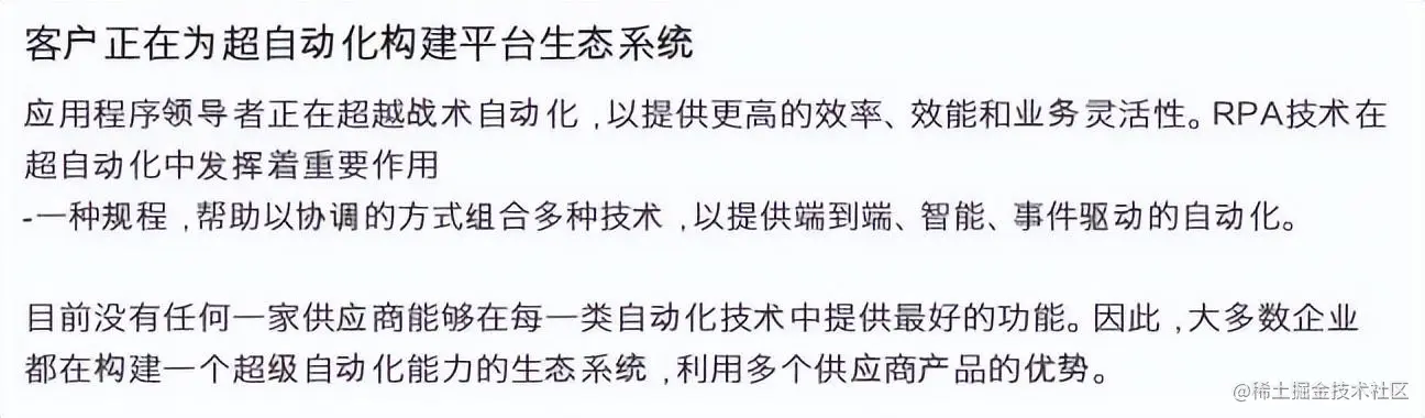 RPA技术与产品不断发展的同时也在被淡化,现在RPA厂商们更希望被视为超自动化厂商。